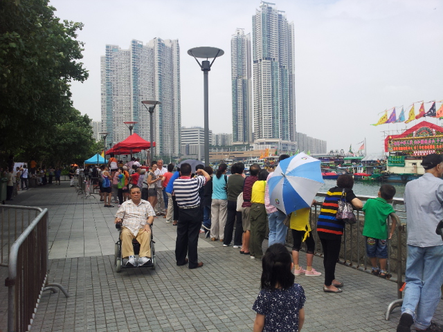今早,又有國際龍舟比賽,整早鑼鼓咚咚响,喧嘩聲震天.這對老夫來說,已是平常事,可是對囡囡來說,是新奇的盛事.在家中看了好一會,過不了癮頭,總嚷著要到場參觀,體驗氣氛.